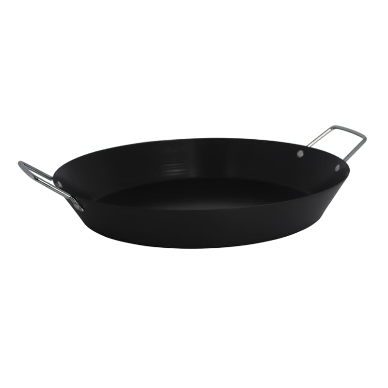 The IMUSA 15″ Carbon Steel Paella Pan is an essential piece in every kitchen. This Paella Pan is made of carbon steel and has an authentic Spanish design with a hammered exterior and a nonstick interior surface. The IMUSA Carbon Steel Paella Pan comes in a size of 15”, features high walls, and has double-side riveted handles that ensure a comfortable grip, allowing you to maneuver it effortlessly as you create culinary masterpieces. Whether making paella or any rice recipe, cooking meat, or preparing seafood, the IMUSA Carbon Steel Paella Pan delivers exceptional results each time. It is perfect for stovetop, campfire cooking, roasting, or even baking, and it’s ideal to take straight from the kitchen to the table as a stylish serving dish. Trust the IMUSA Carbon Steel Paella Pan for balanced, home-cooked meals. It will surely become your kitchen’s beloved companion, uniting tradition, and innovation in every delectable creation and elevating your culinary experience.