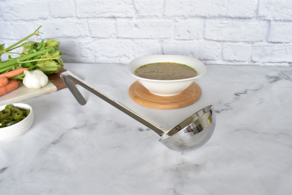 The IMUSA 16Oz Stainless Steel Ladle is a reliable tool for serving soups, sauces, and more. Made from durable stainless steel with a sleek, mirror-polished finish, it ensures easy cleaning and longevity. Its long handle allows for safe, mess-free serving, even in large pots. This ladle is designed for easy storage and quick access, making it perfect for family dinners or festive events. Its versatile size will quickly become a kitchen essential. Trust the IMUSA 16Oz Stainless Steel Ladle for balanced, home-cooked meals. It will surely become your kitchen’s beloved companion, uniting tradition, and innovation in every delectable creation and elevating your culinary experience.