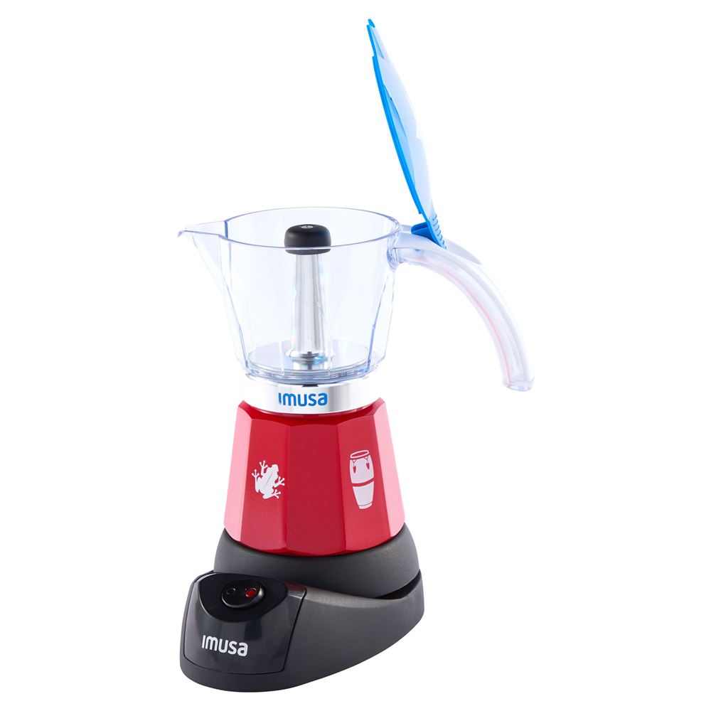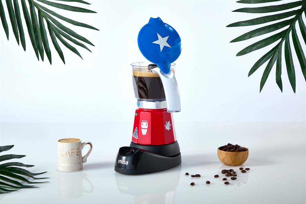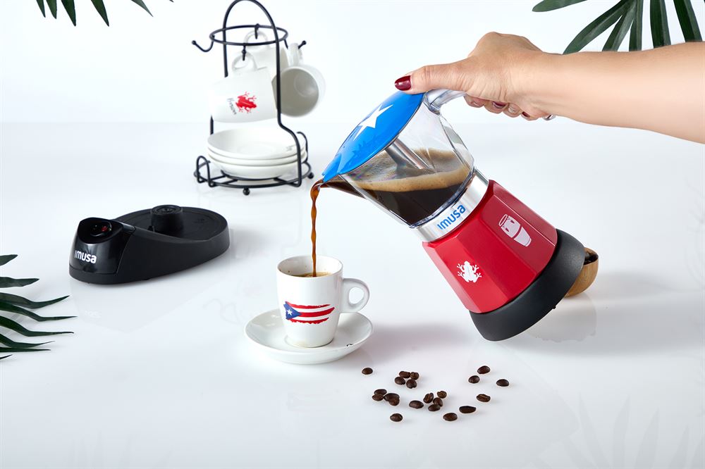 The IMUSA Electric Espresso Maker is a vibrant tribute to Puerto Rican culture with a limited edition design featuring the iconic flag, coqui frogs and congas. With a 6-cup or 3-cup capacity, it brews rich espresso with ease. Its cast aluminum base and clear Tritan carafe offer durability and style with a red base, blue top, white star and white handle. The removable base with on/off switch and cool-touch handle ensures safe, effortless use. Perfect for traditional espresso, Puerto Rican or Italian coffee, mocha and more. Great for everyday use, entertaining, office or travel. Packaged in a gift box-an ideal gift for coffee lovers. Trust the IMUSA Espresso Maker for balanced, home-cooked meals. It is sure to become a beloved companion in your kitchen, combining tradition and innovation in every delicious creation and enhancing your culinary experience.