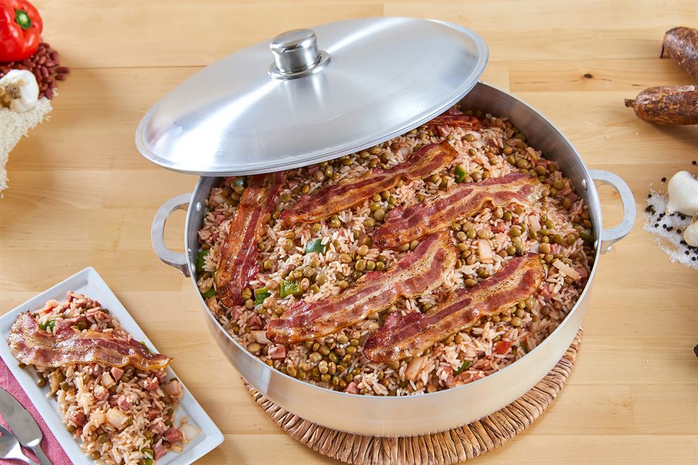 El Caldero Pulido IMUSA de 6.9 cuartos es una herramienta indispensable en cualquier cocina, especialmente para quienes disfrutan de la cocina tradicional hispana. Fabricado en aluminio de alta calidad, este caldero cuenta con una superficie de cocción con acabado natural que garantiza una distribución uniforme del calor, asegurando que sus comidas se cocinen a la perfección en todo momento. Su diseño apto para horno, junto con asas de fácil agarre y una tapa de cierre hermético, lo hace ideal para retener la humedad y realzar los sabores. Versátil y duradero, el Caldero IMUSA es perfecto para una amplia gama de tareas culinarias, desde cocinar arroz y sopas a fuego lento hasta preparar frijoles, salsas, guisos e incluso hornear. Su diseño fácil de usar y su rendimiento superior lo convierten en la opción ideal tanto para el uso diario como para ocasiones especiales. Confíe en el Caldero Pulido IMUSA como su ayudante de cocina. Sin duda, se convertirá en el compañero predilecto de su cocina, simplificando y mejorando sus proyectos culinarios.