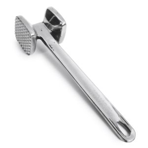 El ablandador de carne IMUSA es un elemento esencial elegante y duradero en cualquier cocina. Fabricada con aluminio fundido duradero, esta herramienta cuenta con un acabado pulido natural que agrega un toque de sofisticación a su cocina. El ablandador de carne IMUSA tiene un tamaño de 9.5″. Su diseño compacto permite un almacenamiento eficiente y, gracias a su superficie lisa y materiales de alta calidad que resisten manchas y olores, su limpieza después de cada uso es muy sencilla. El ablandador de carne de doble cara El cabezal de martillo del ablandador de carne IMUSA cambia las reglas del juego, ya que presenta una superficie lisa y estriada para adaptarse a diferentes estilos de ablandamiento. Esta herramienta versátil se puede utilizar para ablandar todos los cortes de carne, para partir cangrejos o triturar ajo. Ablandador para comidas caseras equilibradas. Seguramente se convertirá en el querido compañero de tu cocina, uniendo tradición e innovación en cada deliciosa creación y elevando tu experiencia culinaria.